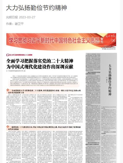 3月27日,《光明日报》“学习贯彻习近平新时代中国特色社会主义思想”专刊发表了我校海角首页社网页版登录入口谢卫平教授署名的理论文章《大力弘扬勤俭节约精神》。
