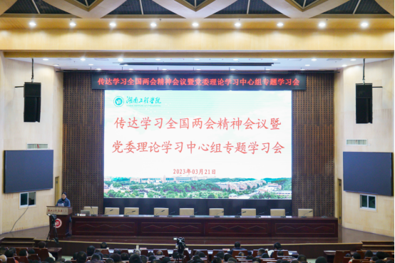 会上,全国政协委员、湖南工程学院副校长陈赤平以《传达两会精神报告》为题,围绕大会基本情况、会议主要精神、驻湘政协委员履职情况以及个人履职情况等方面,结合自己参加全国两会的所见、所闻、所感,以现场第一视角和切身感受,介绍了全国两会的盛况。他重点围绕习近平总书记在全国两会上的重要讲话精神,选举产生新一届国家机构和全国政协领导人员,政府工作报告、全国人民代表大会常务委员会工作报告等重要内容进行深入阐释,并重点传达了习近平总书记在参加十四届全国人大一次会议江苏代表团审议时的重要讲话精神、在看望参加全国政协十四届一次会议的民建工商联界委员时的重要讲话精神、在出席十四届全国人大一次会议解放军和武警部队代表团全体会议上的重要讲话精神。陈校长深入浅出、多角度地为大家讲解,确保全国两会精神在学校落地生根、开花结果。