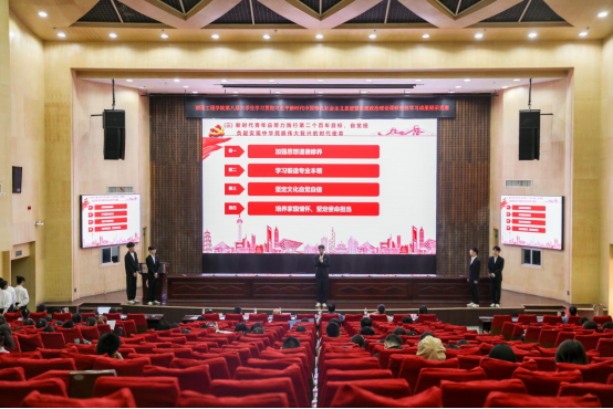 为深入学习和贯彻习近平新时代中国特色社会主义思想,推进思想政治理论课建设改革创新,激发大学生的理论学习积极性,迎接党的二十大胜利召开,5月8日下午,我校在一报告厅举办学习贯彻习近平新时代中国特色社会主义思想暨第八届大学生思想政治理论课研究性学习成果展示竞赛决赛。