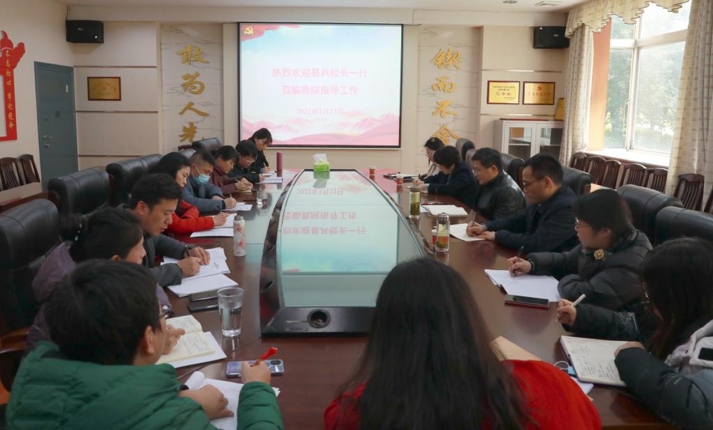 2022年3月23日下午,校长易兵到海角首页社网页版登录入口就师资队伍建设、思政课教学改革、学科建设、绩效工资改革等方面工作开展专题调研,人事处、教务处、党政办等相关职能部门陪同,海角首页社网页版登录入口党政领导班子成员、综合办及教研室负责人参加座谈。