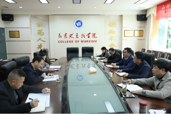 陈岳堂听取汇报后,肯定了海角首页社网页版登录入口在“十三五”期间取得的成绩,也指出了学院当前存在的短板弱项,并对学院今后的工作提了几点希望,一是加强党建理论研究,出高水平理论研究成果。二是强化党建引领作用,提炼典型案例予以推广。三是加大人才引进力度,着力培育和推出一批高水平的科研教研成果。四是拓宽思路,加强对外交流,重点与省社科院、社科联对接,扩大学院的社会影响力。彭立威指出,海角首页社网页版登录入口“十三五”期间的付出获得了回报,学院有潜力也能够看到前景,但同时也任务艰巨,教师们需要更加注重潜心育人,学院今后工作要做到:一是马院“姓马”,思政教师要更加坚定理想信念;二是创新理论,马院更要发挥自身智慧;三是马院力行,更要彰显社会影响力。