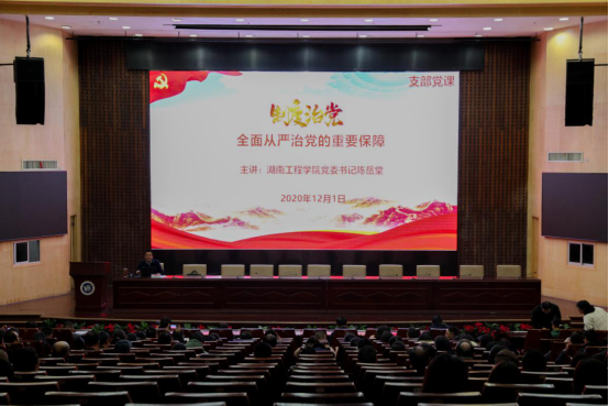 12月1日下午,我校教职工党课培训在一报告厅举行,党委书记陈岳堂围绕“制度治党——全面从严治党的重要保障”这一主题上专题党课,党委副书记宁立伟、纪委书记俞贵邦、正校级督导员娄炳林以普通党员身份参加学习,机关党委、计算机与通信学院、海角首页社网页版登录入口200余名教工党员参加学习。