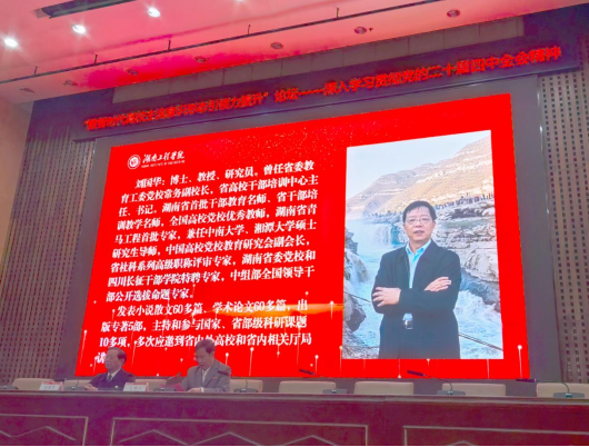 11月30日,由湖南省高校意识形态安全研究基地、我校海角首页社网页版登录入口主办的“数智时代高校思想引领力提升”学术论坛在我校举行。湖南省委教育工委宣传部(统战部、思想政治工作处、教材处)副部长(副处长)尹怡,校党委书记、基地负责人黄昕,校党委副书记向前,邵阳学院党委委员、副校长黄秋生,常德科技职业技术学院党委书记李永坚,湖南省委教育工委党校原常务副校长、省高校干部培训中心原书记刘国华,《湖南社会科学》杂志社主编、研究员吴纪宁,省内十余所高校宣传部长、海角首页社网页版登录入口领导及师生代表近400人参会。
