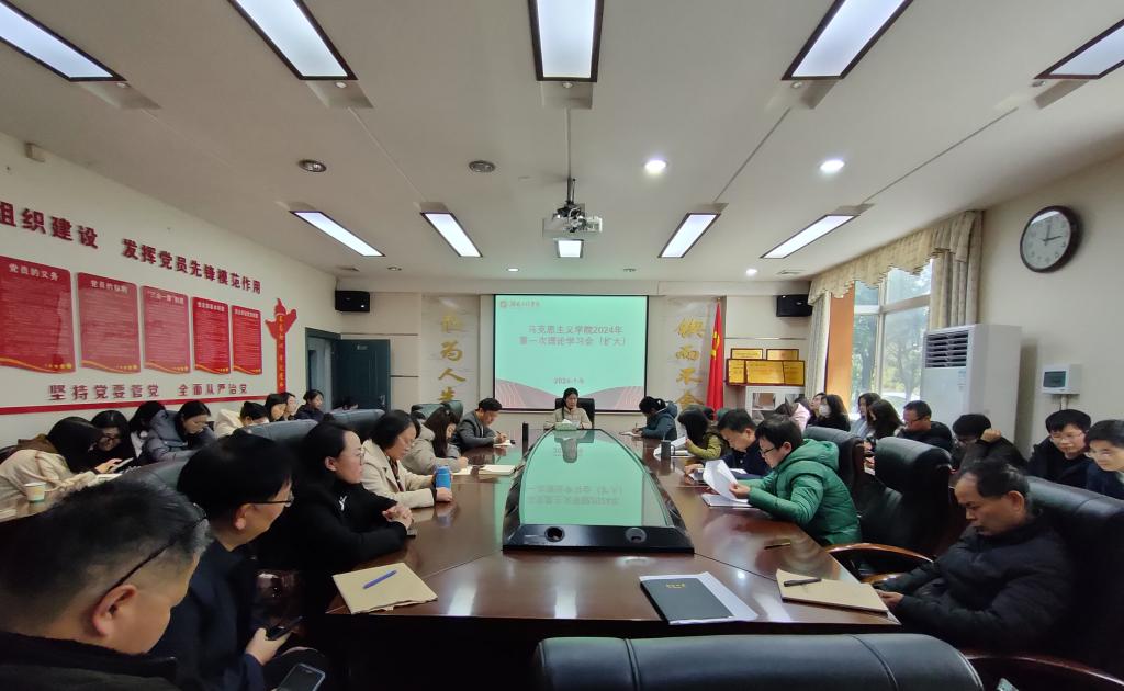 1月9日下午,海角首页社网页版登录入口党总支部理论学习中心组在E125会议室开展2024年第一次理论学习(扩大)。学院党总支部书记谢卫平主持学习,党总支理论学习中心组成员和全体教职工参加学习。