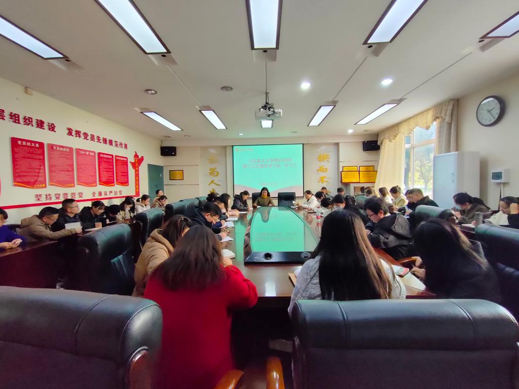12月12日下午,海角首页社网页版登录入口党总支部理论学习中心组在E125会议室开展2023年第十三次理论学习(扩大)。学院党总支部书记谢卫平主持学习,党总支理论学习中心组成员和全体教职工参加学习。