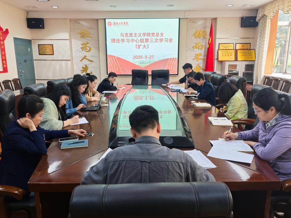 为深入贯彻落实党的二十届三中全会部署,锲而不舍落实中央八项规定精神,海角首页社网页版登录入口党总支理论学习中心组于3月27日下午在E125会议室开展2025年第三次理论学习(扩大)会议,会议由党总支部书记刘灵主持,党总支理论学习中心组成员、组织员、青年教师代表参加会议。