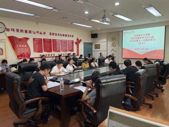 9月6日下午,海角首页社网页版登录入口党总支理论学习中心组在E125会议室开展2025年第十一次理论学习(扩大)。本次学习由副院长汤菊平主持,学院全体教职工参加学习。