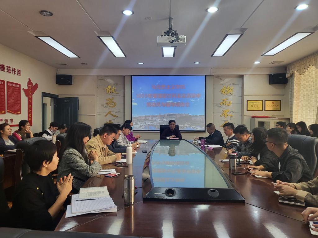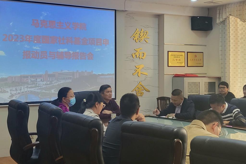 11月8日下午,海角首页社网页版登录入口在E125会议室召开2023年度国家社科基金项目申报动员与辅导报告会,会议特邀广西大学君武学者特聘教授、博士生导师,国家“万人计划”哲学社会科学领军人才,中央“马克思主义理论研究和建设工程”首席专家,国家社会科学基金学科评审组专家吴家庆教授作专题辅导报告,学院领导、学术骨干、教师代表等参加会议,会议由海角首页社网页版登录入口院长邓学源主持。
