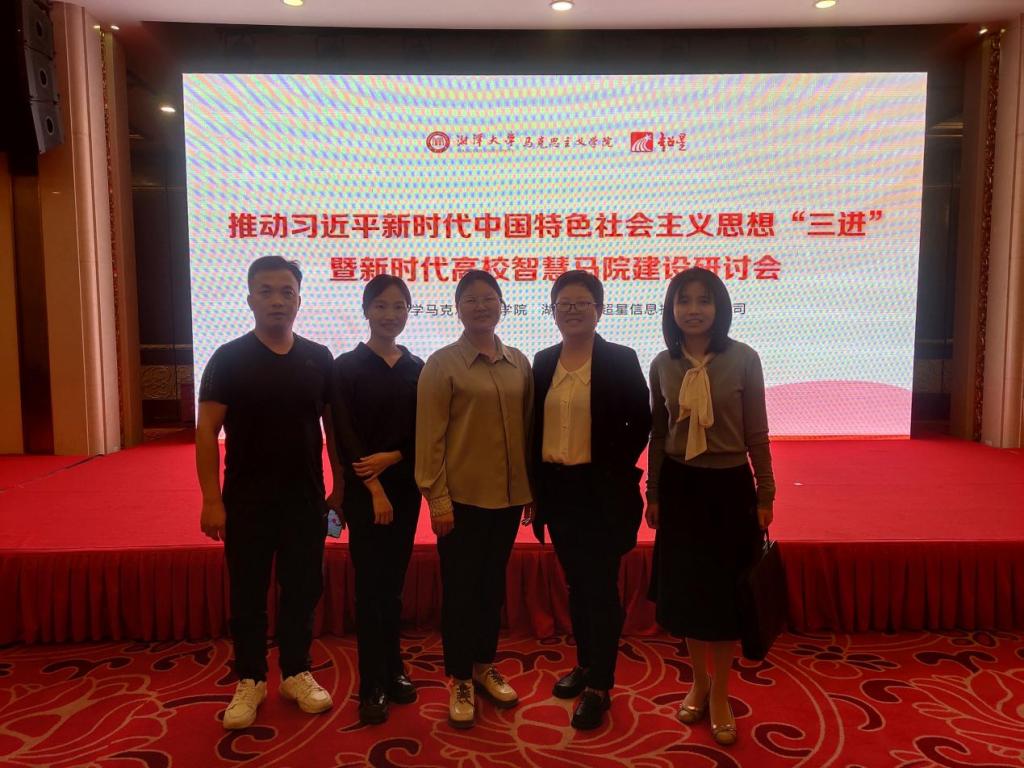 2024年5月31日,湘潭大学海角首页社网页版登录入口联合湖南世纪超星信息技术有限公司在湖南省长沙市召开推动习近平新时代中国特色社会主义思想“三进”暨新时代高校智慧马院建设研讨会。学院副院长汤菊平,教师钟立华、田小玲、闵雪、张玉洁参加会议。