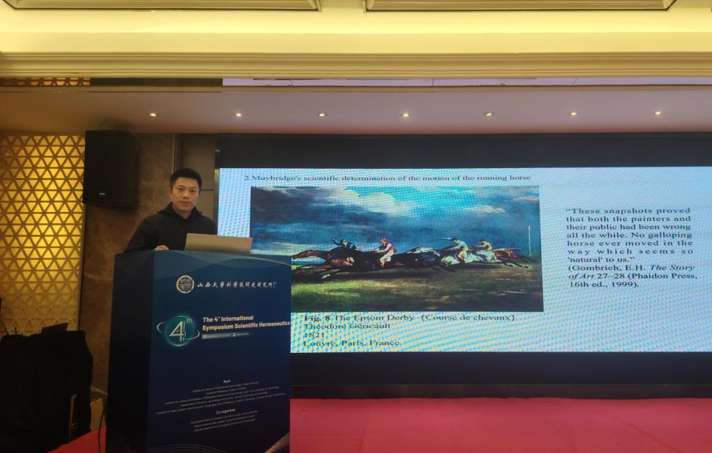 我院雷志华副教授受邀参会,并在分论坛作了题为“Ancient China’s Depiction of Galloping Horses’Posturein Tong Benma-StyledImages”(《中国古代对铜奔马式图像奔马姿态的捕捉》)的学术报告。报告从中外科技史视角,综合使用考古学、科技史、艺术史等材料,对中国旅游标志铜奔马进行了深入探讨,分析了此类姿势的姿态捕捉,揭示了其中的科学和艺术价值。