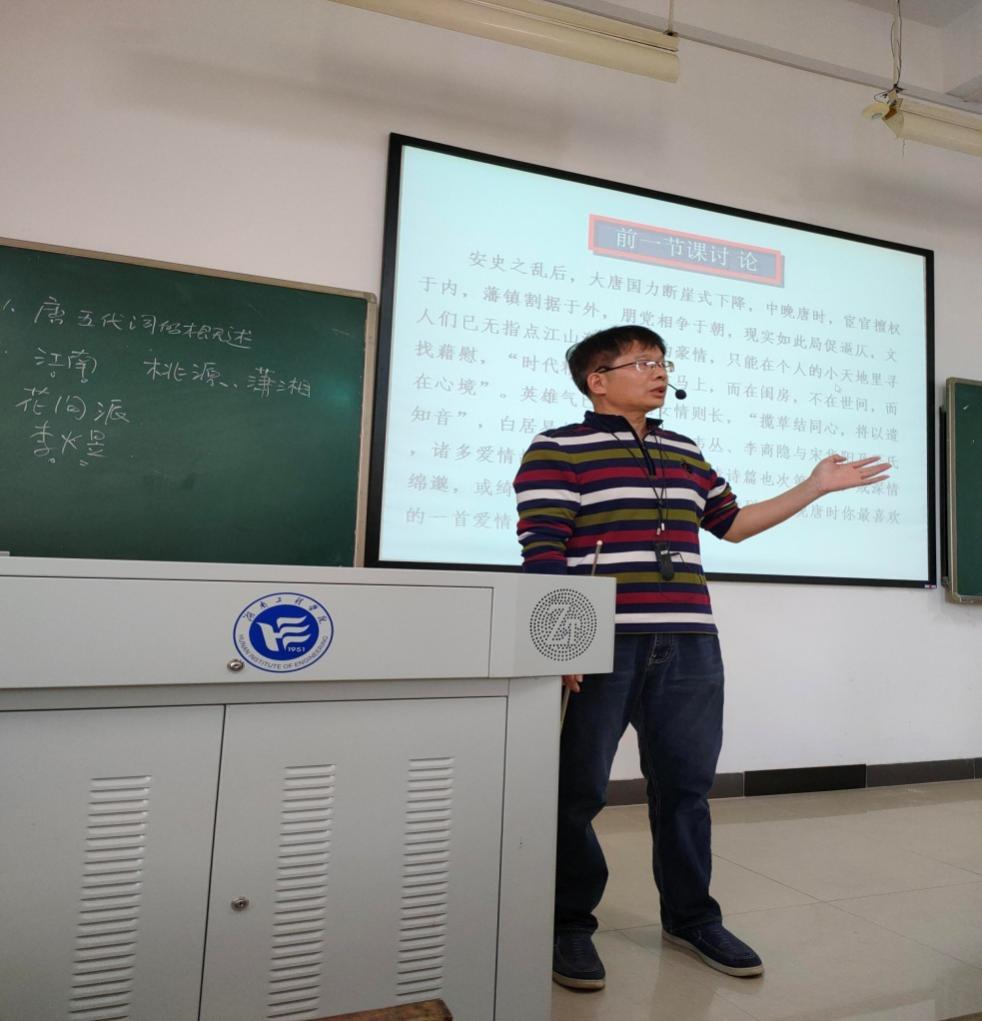 2020年11月9日上午第3节课,我院在主校区教学楼C—506教室开展了一场《大学语文》教学公开课活动,授课教师为唐林轩老师,授课班级为微电子工程2003、2004班,授课内容为《唐、五代词》。