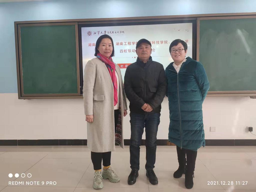 12月28日上午,为贯彻落实习近平总书记在学校思想政治理论课教师座谈会上的重要讲话精神,促进海角首页社网页版登录入口内涵式发展,我院《中国近现代史纲要》教研室教师前往湘潭大学海角首页社网页版登录入口参加同城备课会。中国近现代史纲要教研室陈坚、李琼琼、田小玲等三位教师参加了会议。