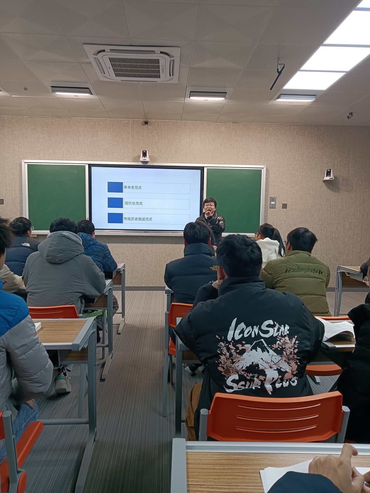 在公开课教学中,田小玲老师主讲导言部分,从为什么学、学什么、怎么学三个方面介绍了中国近现代史纲要课程的性质、内容以及学习的方法。她以如何评价李鸿章为切入点展开讲授,着重分析了中国近现代史纲要课程性质。同时,将十九届六中全会中“四个时期”的内容融入教学之中,在课程讲授中分四个时期讲述中国共产党百年的奋斗史。汤菊平副院长认为应该解释范式这一概念,同时可以从“纲”与“要”的角度解释中国近现代史的主题与主线。陈坚老师指出,因为近代中国的时代主题是救亡,所以但凡有利于救亡图存,民族独立、人民解放的一系列人物和事件都应该讲清楚,应该解释清楚。李智良老师提出,要讲清楚唯物史观的内容。邓新年、李琼琼以及周微老师分别就教态、教师语调、教学内容的选择方面提出了建设性的意见建议。