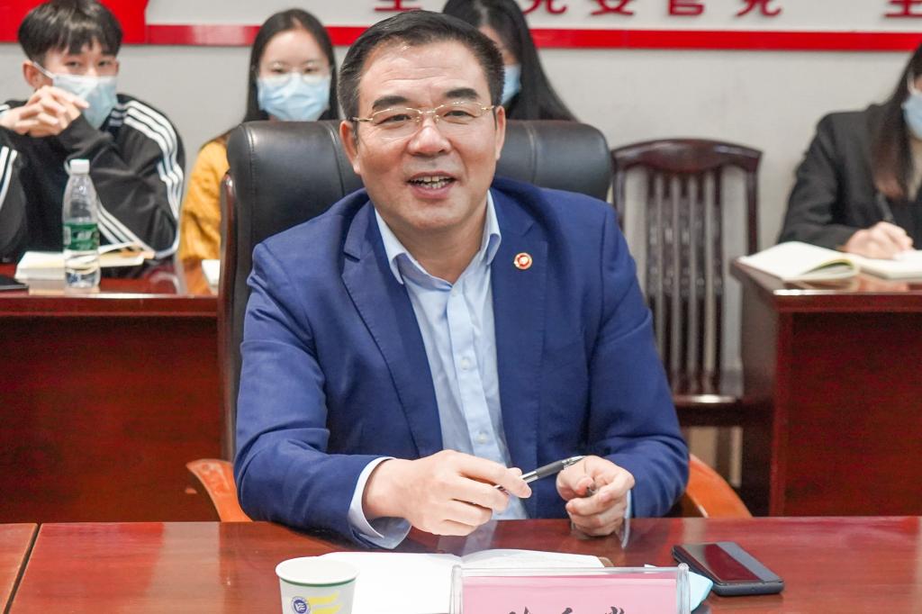 海角首页社网页版登录入口院长谢卫平对陈瑞来到学院调研指导工作表示热烈欢迎和衷心感谢,接着从学院基本情况、近五年工作情况、如何构建”大思政“格局以及下一步建设规划四个方面作了全面汇报。